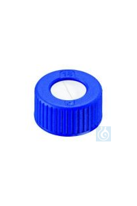 Кришки з різьбою для віал N9, ПП,сині, з отвором, септа білий силікон/червоний ПТФЕ, з надрізами, товщина 1мм, 100шт/пак